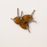 La magnífica instalación ‘IC’, pieza estrella de la muestra en la galería Max Estrella, es un conjunto de móviles de materiales orgánicos, un ‘Calder de la Naturaleza’, configurado por cientos de ramas, piedras, frutas secas, huesos de guindo… que cuelgan de hilos de pescar y consiguen un sutil y perfecto equilibrio.